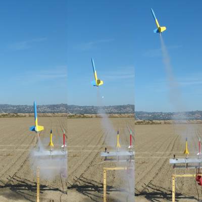 one motor failed to ignite and rocket went horizontal and hit before the ejection charge went off. Minimal damage to nose cone.