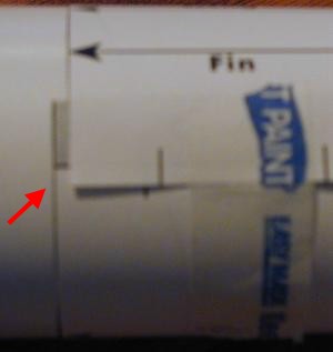 I only ran into one problem during the build. The fin-marking template was too big for the body tube and overlapped too much. The picture shows the problem (out of focus a bit). I was able to make the needed adjustments to have the fins go on symetrically.