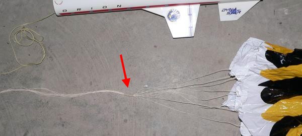 I decided to fly it for the first time on a D12-5. Nice looking, a bit slower, lift-off. It was straight and true. The rocket hit apogee and was starting to head down at ejection. The large yellow parachute provided a very, very slow descent. Too slow for me. So, I significantly reefed the parachute leaving only 1/3rd the length of the shroud lines to open.