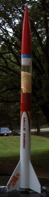 Painting is easy...spray the fins and lower body tube one color, then spray the nose cone another. The peel and stick decals are nicely done with clearly marked cut lines. The one wrap around is the right size to make it around the tube with a 1/4" overlap. It would have been nice to have one more "DynaStar" for the 3rd fin, but I'll live.