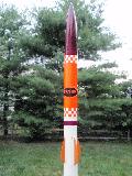 This rocket was later given my "Iris" modification, which extends the body tube about 5 inches above the streamer / parachute bay, and allows for a payload with an Altimeter One to measure altitudes. With it’s most powerful A motor, I can’t seem to get this above the 200-foot mark. (Iris is named after the Greek god of the rainbow. She is a messenger of the gods, linking the gods with humanity.) This rocket has flown higher than the Cape Hatteras Lighthouse in NC, the tallest lighthouse in the USA.