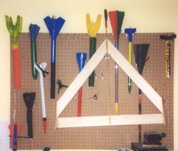 Brief: The Deltie Thunder is a single stage boost glider design. The glider is a triangle shape with a profile type fuselage that divides the triangle in the middle. The rocket booster hooks onto the glider at the nose of the glider and pulls it skyward. At ejection the booster separates and returns via parachute while the glider slowly circles back to earth Construction: The ...