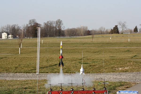 EMRR Stage-bash:Estes Partiot with an Estes Baby Bertha as a booster. Sustainer came in ballistic