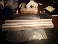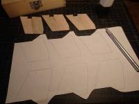 I started working on these fins - they tuck into slots in the foam so I wanted to leave a bit of the root edge unpapered. I cut a notch from the paper before gluing, spread white glue-all, rolled out the excess, trimmed and sanded to size. I used elmer's wood glue at the aft end of each fin and ... [More]