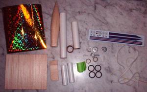 Sustainer construction is pretty easy, considering the (3) fins are simple rectangles 2x5", cut along the grain lines of the balsa. Depending on how you intend to finish the rocket, you don't even need to fill the balsa grain--the kit includes a very nice gold prismatic adhesive sheet for covering the fins (after painting).