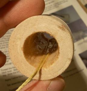 Transition Body: The Transition body is fairly straight-forward. The only tricky part is attaching the Kevlar anchor loop. The original directions used a single Kevlar string, but the supplemental instructions call for the Kevlar to be doubled into a loop. The supplemental instructions were not very clear about how to anchor the loop, so heres how I did it: