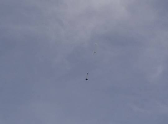 This should actually have been a B6-2 flight. Nose cone hit the top of the body tube when the ejection charge fired well past apogee. Minimal damage.
