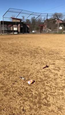 Prettiest flight of the day. Arced out over the softball field, then recovered at pitcher's mound via an old Estes drag chute.