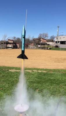 Huge air for this ugly old eBay bird. Windcocked slightly over the softball field, then began a fast drift across 27 to the doctor's building lot. Broke a fin and delaminated the body tube.