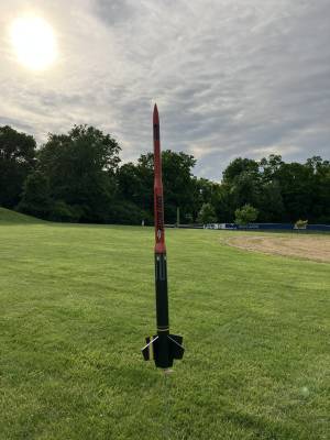 Same flight path as the Centuri, but the parachute filled quicker. Recovered behind third base.