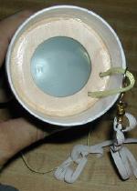 To allow the mounting of electronics in the nose cone and to provide more room for the recovery components, I cut the off the nose cone shoulder in front of the stock parachute hook. When looking for a method of attaching the recovery system and electronics in the modified nose cone, I borrowed a tip from The Rocketry Forum (TRF). I sanded a spare 38mm-to-3" centering ring so that it fits in the nose cone just ahead of the shoulder. It rests against the shoulder, which provides a mechanical lock. I added a loop of tubular Kevlar® for chute attachment, and glued the ring in with Liquid Nails. I used this concept on my Standard Cray-ARM , but never had thought of it for a standard nose cone (vs. the tip of my Crayon rocket). My thanks to John Coker on this one!