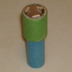 each balsa square flush with one end of inside the tube, equally spaced around the circumference. Then find the green