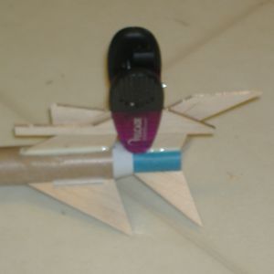 balsa strips and the clip to hold the fin in place on the lower tube. Be patient with the step! This is crucial to