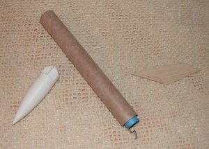 I gave the entire rocket a good coat of Krylon clear to fill in the tiny hints of sanding marks on the nose and fill the wood grain and other undesirable features. The result was pleasing.