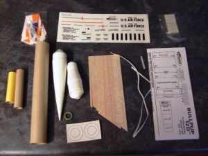 Brief: This is a sport scale version of the Air Force's Bullpup Missile. A skill level 2 rocket but not that hard. It has been around for quite a bit now. Construction: The kit comes in either a box or a bag (nowadays it comes in a bag) and mine had all of the parts. You get: Nose Cone Body Tube Sheet of balsa Tail Cone Clay Nose Weight Centering Rings ...