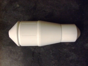 Finishing the bullpup is every simple. The entire rocket has to be white; so the normal few coats of primer and then white spray paint went on the rocket. Next came the decals, and this is where I really have to lower the grade for this kit. The stickers are the peel and stick type, which really do spoil the look of the rocket. The first bullpup I built years ago had the waterslide type decals and the model was far better looking then.