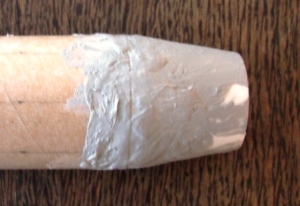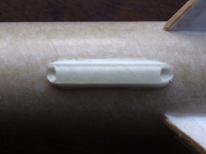 Launch lug had its ends trimmed at an angle to reduce drag. Like the fins it was CA tacked and wood glue filleted.
