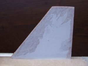 I decided to leave the leading and trailing edges square. I used sticky backed paper to laminate the fins. Not that the fins needed to be laminated for strength, but paper lamination does completely remove any sign of grain. To stop the paper from delaminating I coated the edges with thin CA glue. I used CA gel to tack the fins in place, and then added three fillets of wood glue over a day.