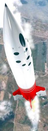 A single-staged, D motor powered sport scale representation of the Canadian Arrow competitor for the Ansari X-Prize.