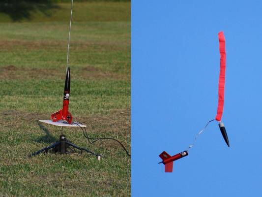 I tilted the pad very slightly south, and the rocket arced very slightly south. Still, it recovered within the yard with no noticeable damage.