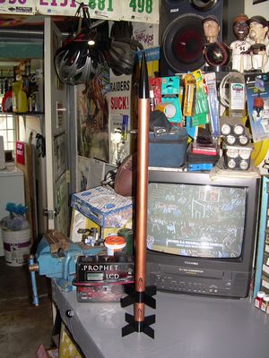 It was super easy to paint. After motor mounts were glued in I primed all parts with BIN primer. I then applied three coats of Rustoleum metallic copper to the body tubes followed by two coats of high gloss black to the fins. No cons here.