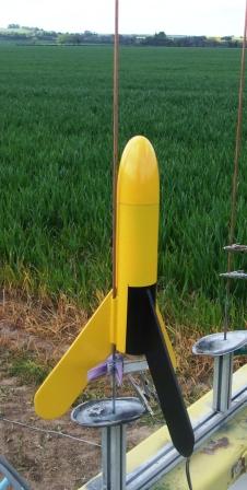 Recovery is via a long streamer, partly because there is not alot of room for a chute, but mainly because it is easier to find a 2 meter length of mylar in a field of crops.
