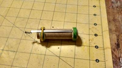 And here we have the pass thru tube, a stripped plastic Qtip shaft. They are hollow, which let's us feed a kevlar thread thru it.