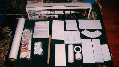 [Rocket Pic]Upon opening the box, it quickly becomes apparent that this is no beginner's kit! There are 15 pages of instructions. The fins are of two-piece vacu-form construction. The quality of the vacu-form parts on this kit were OUTSTANDING! There is also a bag of plastic parts - capsule, nozzles, details, etc. The main BT is white , one piece and very light.