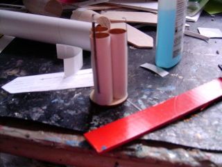 Estes Astron Scrambler You start by gluing the 3 engine tubes together to form pyramid. While that dries, you then stick 4 tape strips into the bottom of the payload tube. Then you add glue to those strips and slide the balsa transition into place. Next, you glue the 3 engine tubes to the centering ring, where they must be aligned correctly or they will not fit in your body tube. You cut a small slit in each of the engine tubes for your engine hooks and tape them to the engine tubes. To ensure a proper fit, slide the motor mount assembly into the butt of the rocket without any glue! Once satisfied with the fit, glue it in the body tube. Make sure the ends of the engine tubes are even with the end of the body tube.