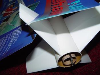 The SM-3 Navy Seahawk was a skill level 2 Explorer Series rocket. Came in a nice box which can be used as a range box. Typical Estes, great instructions, nice quality, and one of their better kits. This kit is out of production (OOP) and I will bet I know why. This can be a dangerous kit to build. Reason being, the fins are RAZOR sharp! I am shocked that Estes ever made a kit with fins this sharp. If you are not careful, you can cut yourself seriously on the fins. See my picture where I cut the package display sheet on one of the fins, like a razor blade.