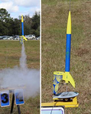 At ejection, the ring glider settled into a flat, long glide. Under a reefed chute, the body followed and both landed in the trees. Not a big loss, its an easy build. I can pick up another at Hobby Lobby.
