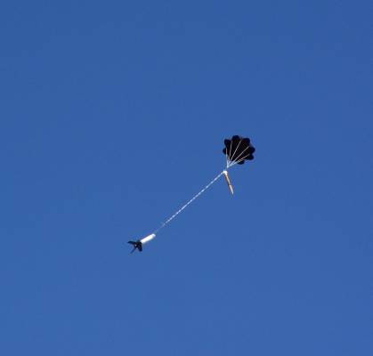 Good straight flight with soft parachute landing about 50 feet from launch pad.
