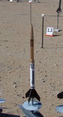 This is a balsa nosecone, three balsa fin skill level 1 rocket kit. The rocket separates at the transition joint to deploy the parachute. The kit has water slide decals. It comes with a 12 inch plastic parachute for recovery. Recommended engines are a B6-4 and a C6-5. The package says it flies to 725 feet. Decent amount of room in the lower BT55 body tube for shock cord and parachute.