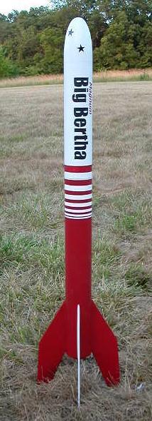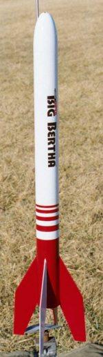 A largish 2.6 inch rocket with a 24mm motor mount. This kit is pretty nice built stock, but came out before the new E9 motor was available. My version includes a motor mount that can accommodate this new product, as well as the new F21 from Aerotech. It also includes an ejection baffle, and fins that go through the wall made from basswood that are not a part of the original kit.
