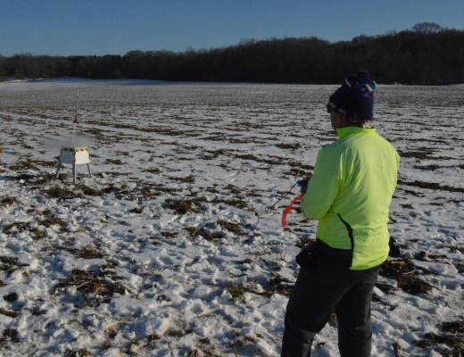 First flight of the AltimeterTwo, was glad I got it back. Rocket was chased down by a bright orange piece of wadding that I had filled with chalk - we weren't sure until it landed that it wasn't some rocket part on fire. I would have sworn ejection was after apogee. Guess it's hard to see from the ground if you don't know.