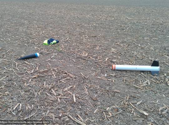 Having flown all black powder Saturday, I decided to lead off Sunday with some APCP purchased from AMW the day before. The Excel went up on a CTI H152 Blue Streak with the delay drilled to 10 seconds. 8 seconds might have been better. Might not’ve. 10 was definitely post-apogee but not by an unreasonable amount. Apogee deployment at roughly 2000 feet meant something of a walk, of course. But the flight was fine.