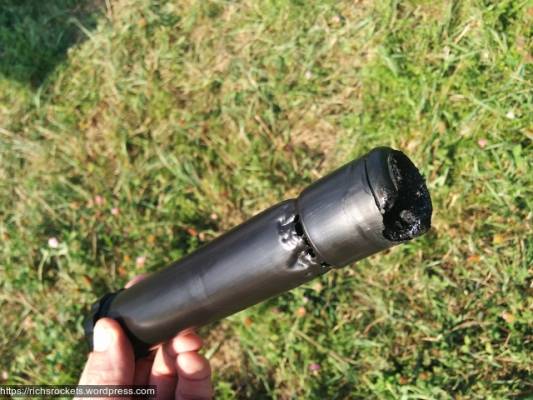 Forward closure failure. There’s been a known problem with Pro38 forward closures, but the notice seems to say the bad resin causing it was used beginning 22 October 2015 while this motor was dated 27 August 2015, so I assumed it was not affected. Maybe it’s a different problem. I’m going to file a MESS report and inform CTI. The Excel’s airframe was destroyed; some of the fin can might be salvageable, if I decide it’s worth it. The chute and nose cone were thrown clear after the harness burned through and are in good shape. Well, I guess I won’t be redoing that paint job after all.