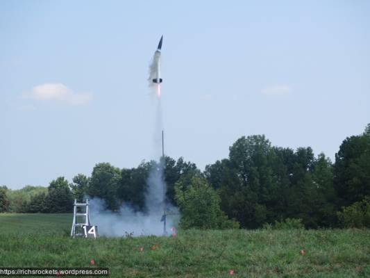 I loaded up my Excel with a CTI H120 Red Lightning. The first ignition attempt failed, surprisingly enough — maybe I didn’t have the igniter in far enough. I tried again with an igniter made by one of the club members. That worked, but the flight didn’t go as planned.
