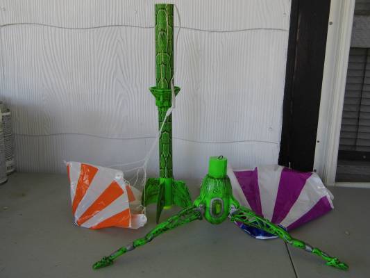 This spectacular rocket has a reptilian look that will "WOW" even the biggest sci-fi fan. The mother ship deploys an alien pod (alien included). The pod extends legs and descends under its own parachute - lands upright everytime. Mothership returns on its own parachute.