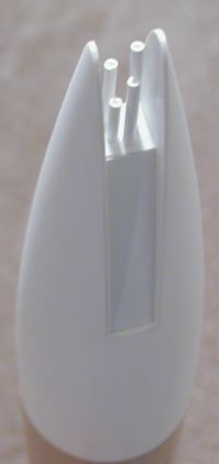 The rocket is assembled in two sections. First, you build the "business" end. This is done by attaching the Pod tubes onto the 24mm motor/body tube. Caps are glued onto the Pod tubes which make them more authentic than just open ended tubes.