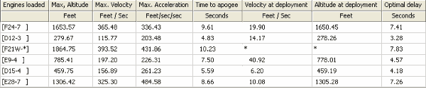 Fat Cat recommends the D12-5, E15-7, and E30-7. Since I was able to create a RockSIM file, thanks to the new RockSIM 7.0 version, I think the D12-3 might be a better fit. It also sims very nice with the new Aerotech F21-8 and the Estes E9-4. I even added a thrust ring sized for these two motors.
