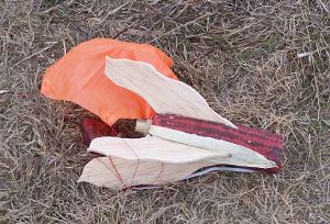 Styrofoam ear of Indian corn with an 18mm motor mount. Now I am trying its little sibling, the A-Corn, designed for