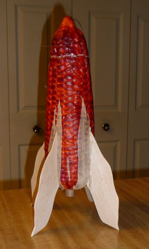 This is a seasonal oddroc based on a Styrofoam ear of corn. It is a cool-looking, sturdy rocket and looks better in person than in photos. My beta test version flies on 18mm motors but 13mm and 24mm versions were also offered. Unfortunately, all had limited runs and more will not be available until next year. I normally don't submit reviews until I've flown a rocket but, since people are getting the kits now, I thought I'd provide my experience building it sooner rather than later.
