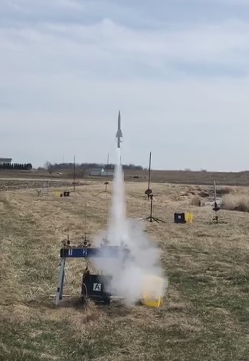 Left the pad heading left over the cornfield. More stable than the previous flight, but still nothing to brag about. Parachute stripped all but two of the lines.