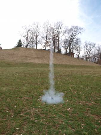 To date I have flown the FK-3 twice, both on an A8-3, and both at B6-4 Field.  The first flight was in primer on an April Fool's Day in 2015.  Straight up flight to 250', then the ejection charge fired and something separated from the rocket.  It was white, but the whole rocket was white, so that didn't narrow the field.  Turns out that the nose cone was a shop scrap, and I never gave it a thought as far as gluing it together.  The cone came down on the infield.  It would be glued in for the next flight.
