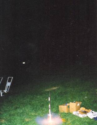 Barely got the rocket over the treeline, but the entire flight was visible thanks to the glow stick and engine flame. Pretty cool.