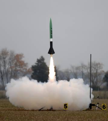 A BIG NUKE I had made with a central 54mm MM and (3)29mm MM, This flight was a KBA K750W off the pad and air starting (3) H97J's 2 seconds after main burn out.