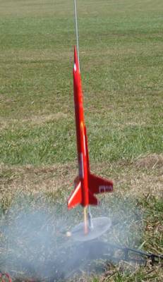 Nice boost, smooth and straight, no wiggles. Nose up, just stalling out at ejection. Good chute, minor drift, grass landing, no damage.