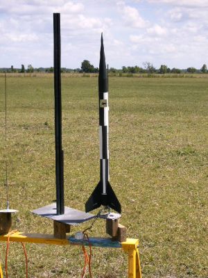 The third and most recent flight took place 8/9/08 at the Challenger 498 Club launch down in Needville, TX. Using the E9-4 again, the E9 gave the BB - II a really nice boost (much higher than I've seen it go before) in very calm conditions and excellent weather. Landing a few hundred feet away, the Black Brant was in excellent condition. I'm planning on using the AT E30-7T the next time I fly this bird.