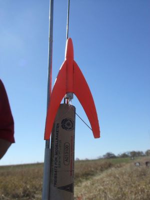 Jim Flis is up to his usual shenanigans again with this one. This "Big Honkin' Rocket" is a mere 3.25 inches tall, and weighs 1.3 grams (after heavy painting). The punchline comes when, at a club launch, you call for the heads up flight (so everyone can help you recover it) and announce that you're flying a Big Honkin' Rocket that in fact, can't likely be seen from more than about 50 feet away. Ever recovered an Estes Mosquito? Then step up to the challenge of flying and recovering a Big Honkin' Rocket!